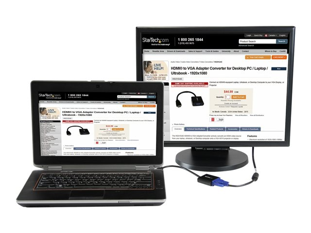 - Det behövs ingen extern strömadapter till HDMI till VGA-adaptern vilket säkerställer maximal bärbarhet