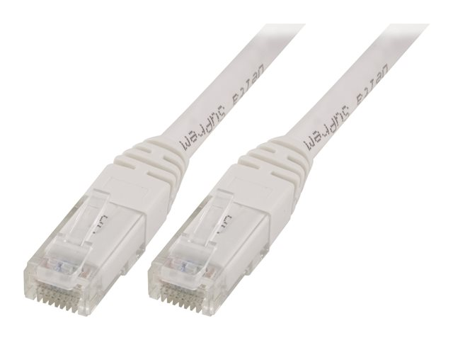 U/UTP Cat5e patchkabel, 10m, 100MHz, vit Nätverkskabel med gjutna RJ45-kontakter.