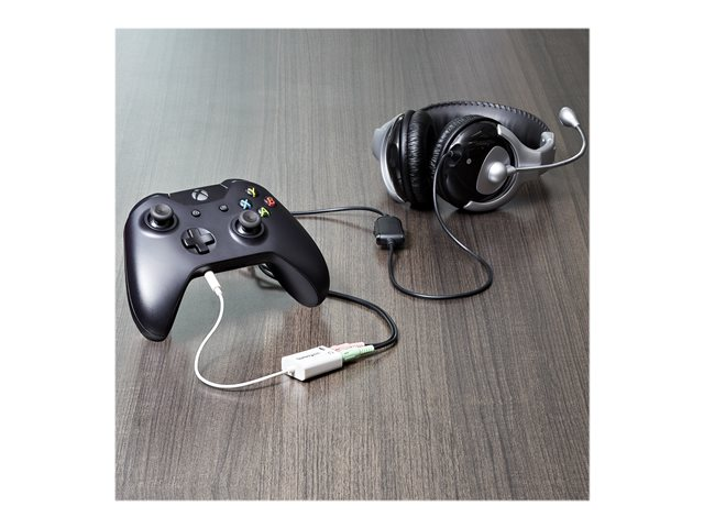Have you recently purchased a newer laptop or Ultrabook and now you can't figure out where to plug in your favorite headset? Most new laptops and Ultrabooks come equipped with a single 3.5mm 4-position (4pin) audio port that supports both audio input and output. A great number of headsets on the market come equipped with two separate headphone and microphone connectors that are not compatible with this new configuration. The MUYHSMFFADW white headset adapter features two 3.5mm 3-position ports that provide a separate headphone and microphone connection that can be connected to the single audio port on your laptop. Alternatively, you can also connect a separate microphone and powered speakers if you prefer to use Skype or chat online without using a headset. Simply connect the headphone plug from your headset into the audio output port marked with the headphone symbol, and connect the microphone plug into the audio input port marked with the microphone symbol. Plug the adapter into the audio port on your laptop and you're all set. Want to work or game without using a headset? You can also connect a microphone and powered speakers to your laptop using the adapter. Just plug in your microphone into the audio input port marked with the microphone symbol, and plug your powered speakers into the audio output port marked with the headphone symbol, and connect the adapter to the audio port on your laptop. Are you travelling for work or taking a trip? The headset adapter features a compact and sturdy design that makes it the perfect solution for mobile applications. Tuck the adapter in with your tablet or slip it inside another carrying case. It works great with tablets and smartphones that have a single audio port. Just connect the headphone and microphone plugs from your headset into the adapter, connect the adapter to your mobile device and start talking. This adapter is not a headphone splitter or Y-cable. It cannot be used to split the audio output to two separate sets of headphones or speakers. Some laptops and mobile devices will not work with all external microphones. This is typically caused by an impedance mismatch between the microphone and the device. This is due to hardware incompatibility and is not a limitation of the MUYHSMFFADW adapter.