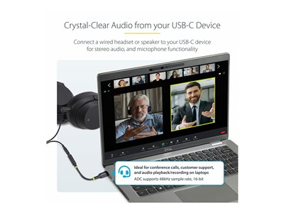 StarTech.com USB-C Audio Adapter to 3.5mm TRRS Jack, Headphone Aux Dongle