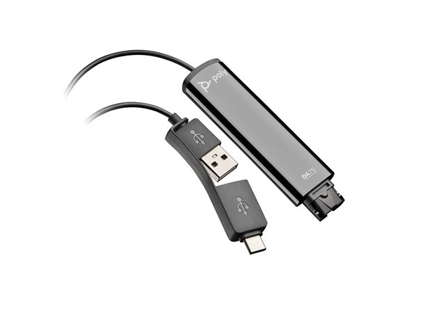 - Bevara tekniska investeringar med Poly DA-serien. Dessa digitala adaptrar inkluderar både USB-A- och USB Type-C ?-åtkomst direkt på kabeln samt är kompatibla med alla nya och äldre Poly-headset och -tillbehör .
