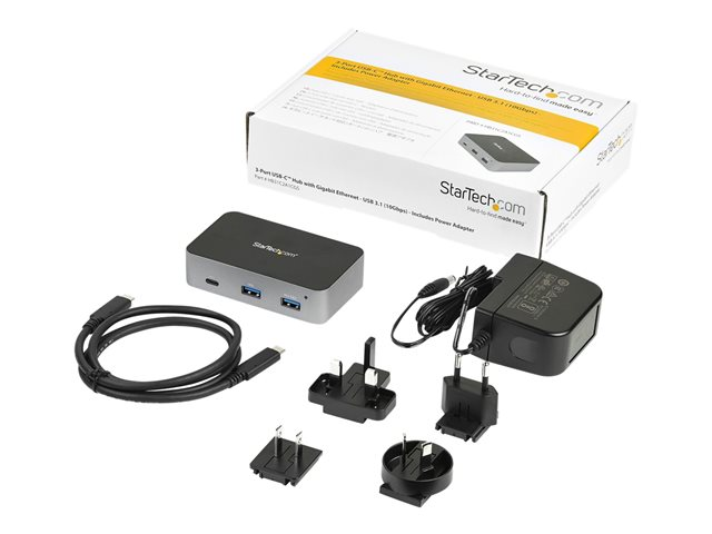 StarTech.com 3-Port USB-C hubb med LAN Port - 10 Gbit/s - 2x USB-A & 1x USB-C - strömförsörjning